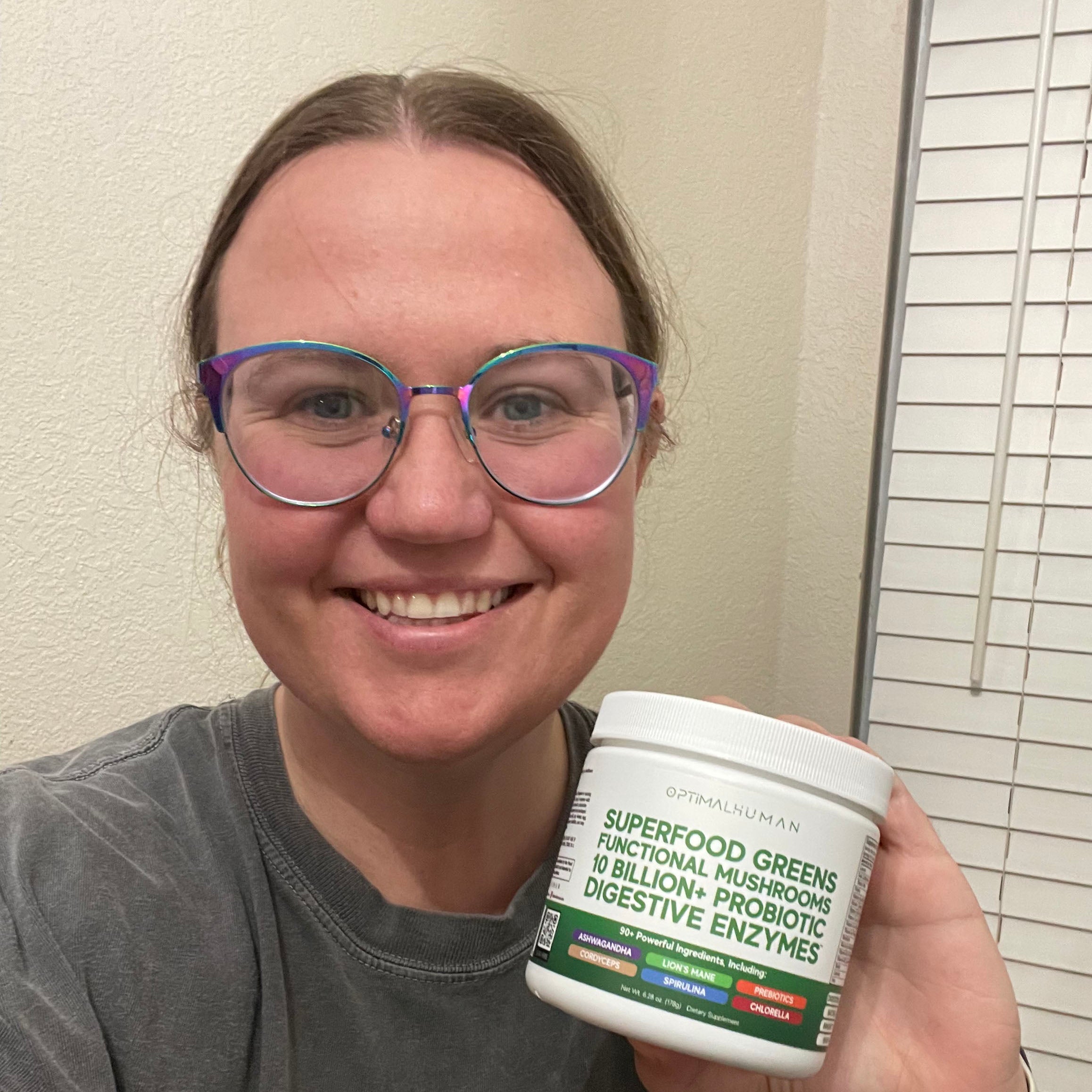 Optimal human is great! Keeps me focused and full of energy plus my gut is becoming more regular. In conjunction with exercise I feel stronger than ever.